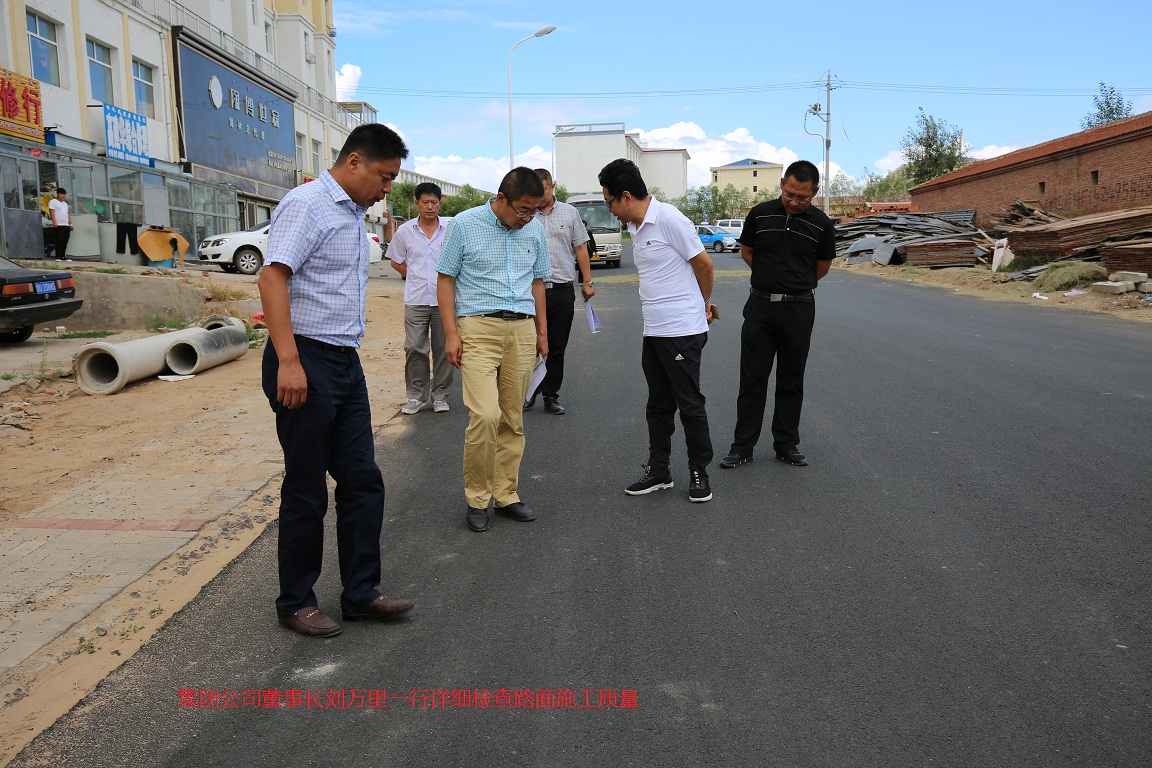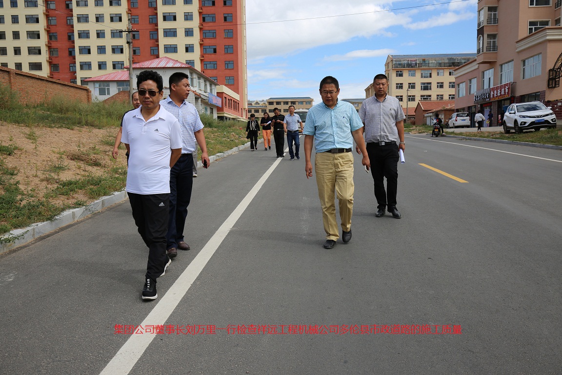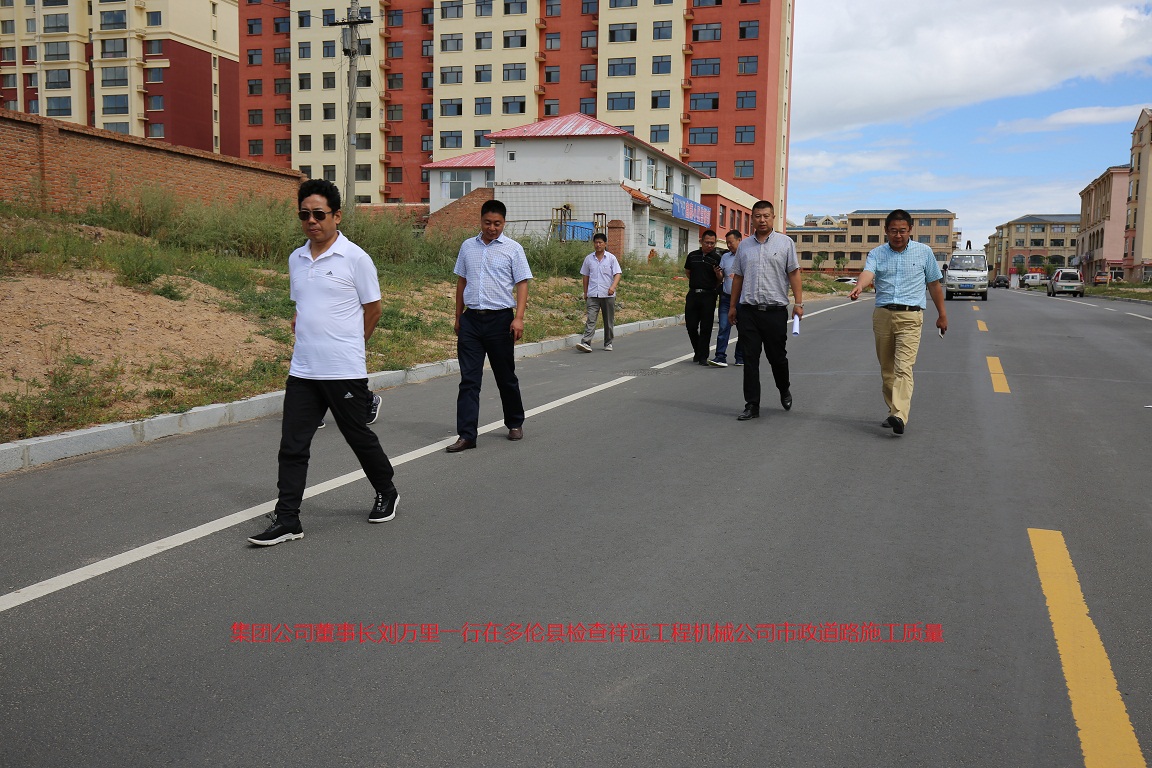 2017年8月16日,祥遠(yuǎn)路橋集團(tuán)董事長(zhǎng)劉萬(wàn)里一行趕赴錫盟多倫縣檢查市政道路施工情況,隨行的集團(tuán)公司總工、副總經(jīng)理、各部門負(fù)責(zé)人和技術(shù)人員對(duì)該工程進(jìn)行聯(lián)檢聯(lián)評(píng)。檢查組一行克服長(zhǎng)途坐車,身體疲憊的困難,立即投入工作,仔細(xì)、詳盡 的了解施工中的各種情況,對(duì)施工資料、施工記錄等材料仔細(xì)核實(shí),有在施工現(xiàn)場(chǎng)與施工人員現(xiàn)場(chǎng)溝通,對(duì)該工程的詳細(xì)情況做到了然于胸。